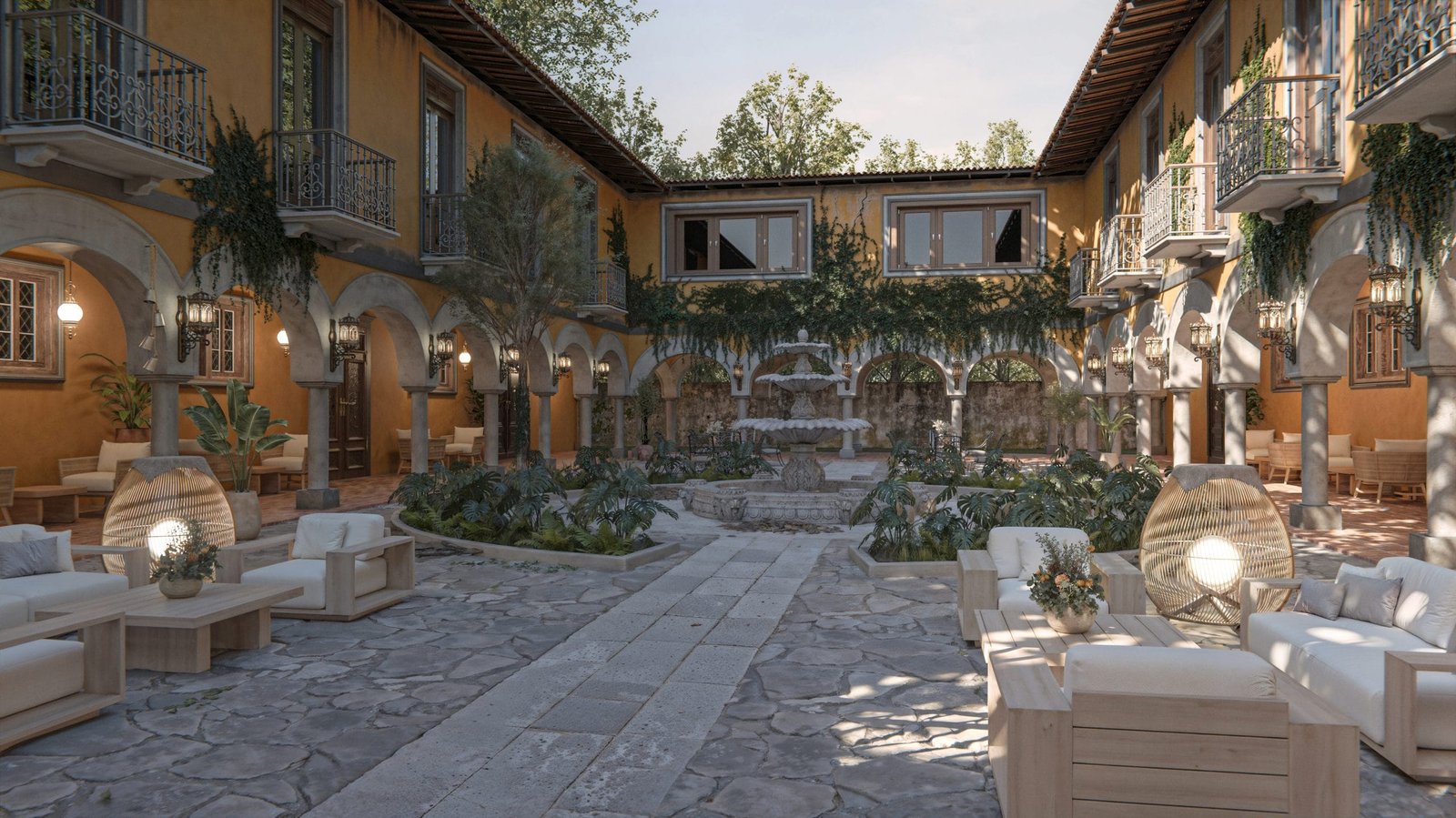 Renderizado de fachadas 3D fotorealista para mostrar materiales, iluminación y entorno antes de construir; ideal para presentar y vender (viviendas, plazas, hoteles y más).