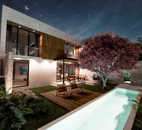 - Incluye: fachada principal + vista clave, materiales personalizados, iluminación día/noche.