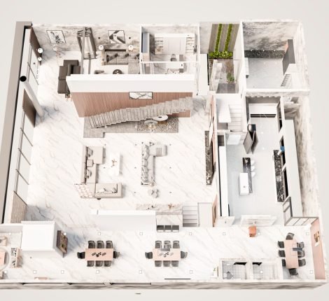 Renders 3D de interiores fotorealistas para visualizar estilo, materiales e iluminación antes de ejecutar. Te apoyamos con diseño, decoración y creación de materiales para comunicar valor en hogares y espacios comerciales.